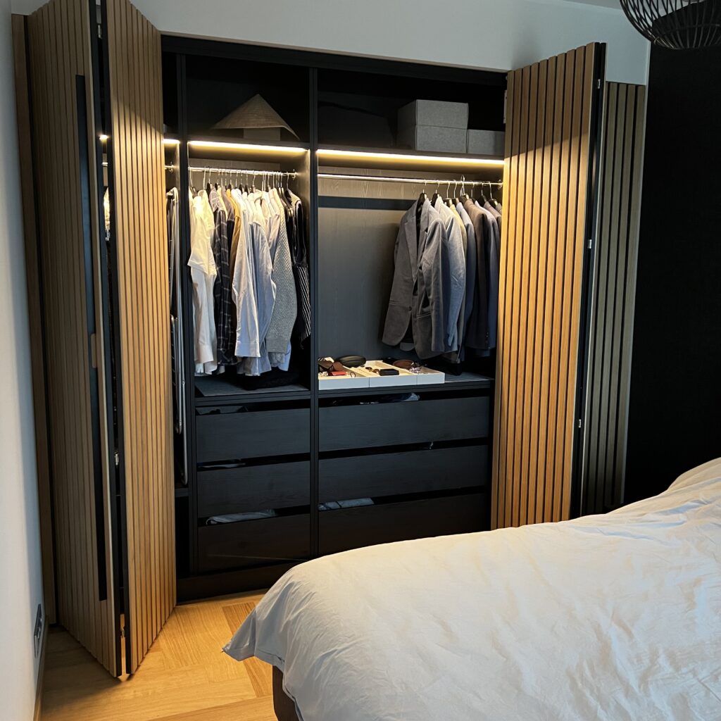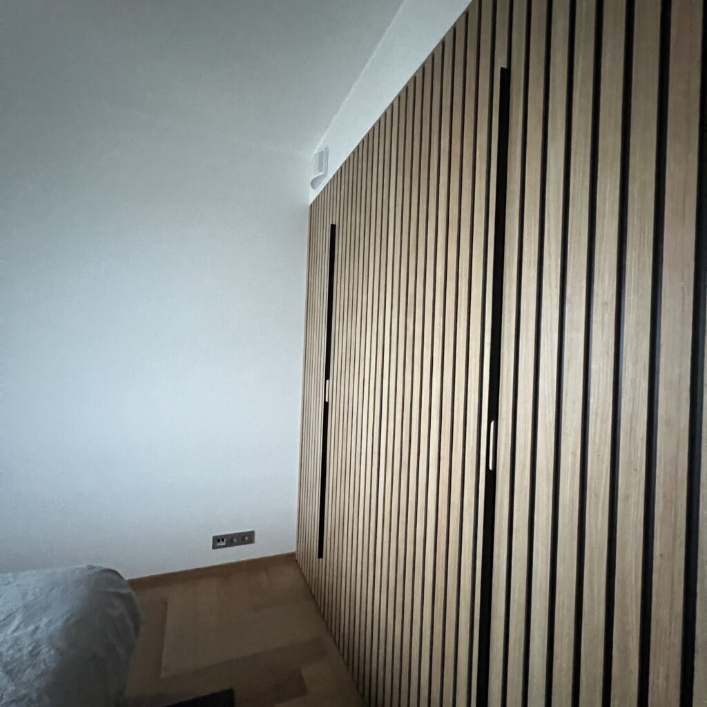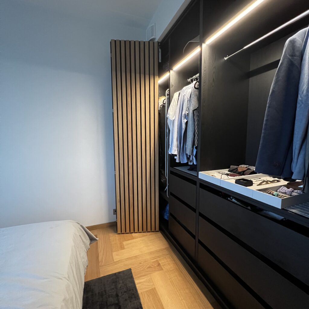 Garderoobi kapid on vajaduse põhised, aga miks nad ei võiks ilusad välja näha. Sellel korteri puhul on pandud kokku mõlemad asjad praktilisus ja ilu. Kappide puhul on mõeldud, et neid oleks mugav kasutada ja samas oleksid kapid oma lihtsusega ilusad