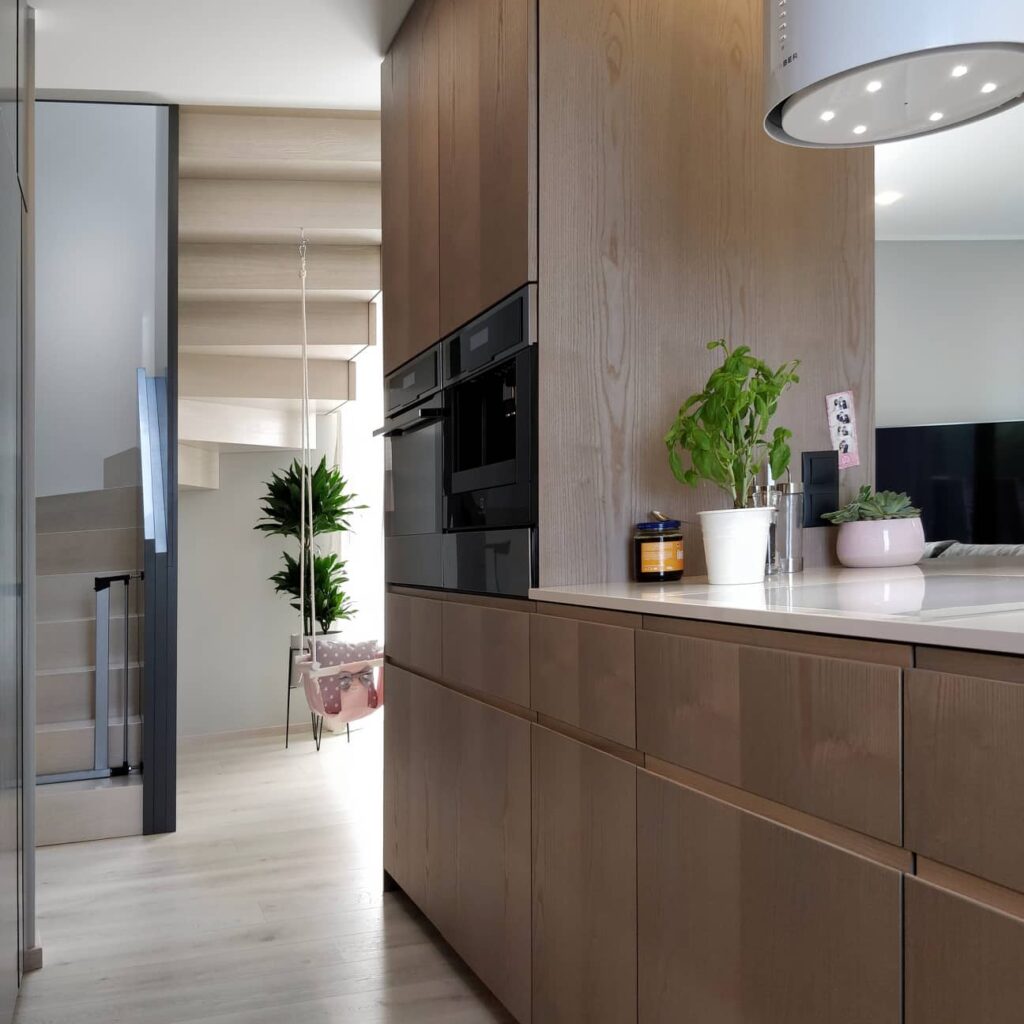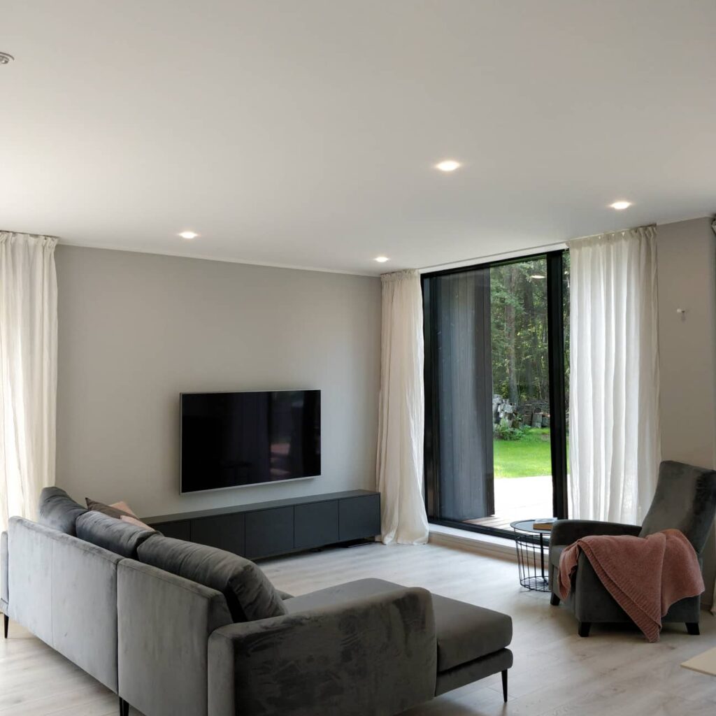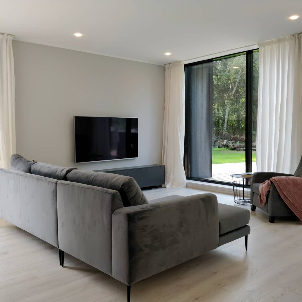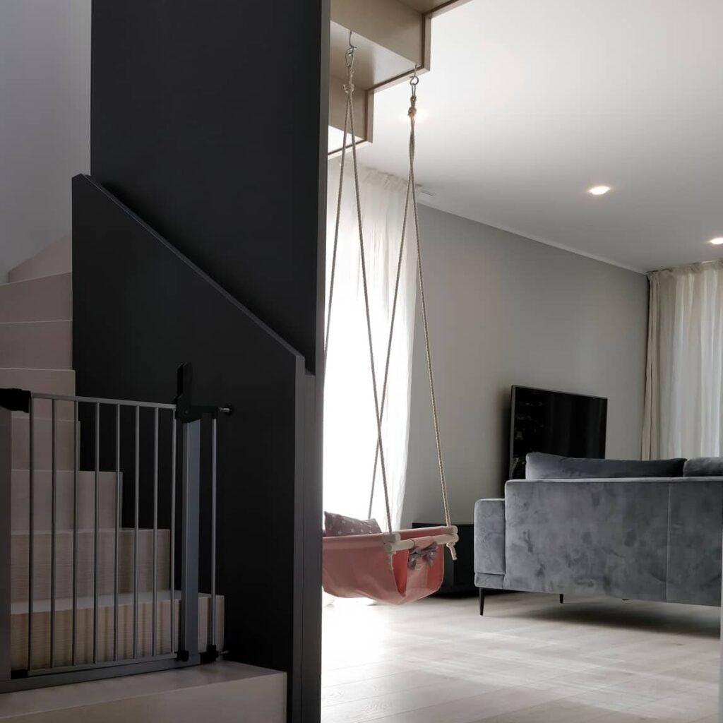 Elamu mööbli sisekujundus tegi Ketsia Reismaa. Mööbel on oma loomult lihtne, aga mõned detailid toovad esile selle eripära ja luksuslikkuse. Eriti hästi joonistub välja elutoast vaadetes trepp, mille alumine pool jälgib trepi astmed. Samuti jääb väga hästi silma tehnika kapp, mille paneelid on kaetud spooniga. Majas on tehtud iga mööbli tükk nii, et see harmoniseeriks üksteisega.